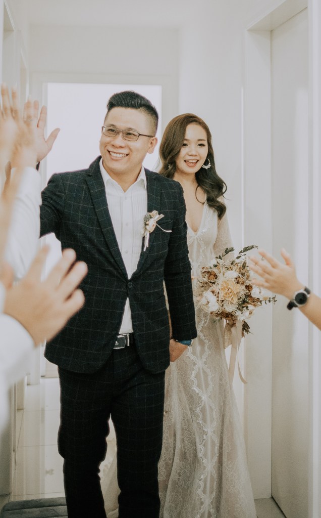 The design of a wedding gown can vary from a simple, classic A-line dress to an elaborate ball gown with lace, beadings, and intricate details.