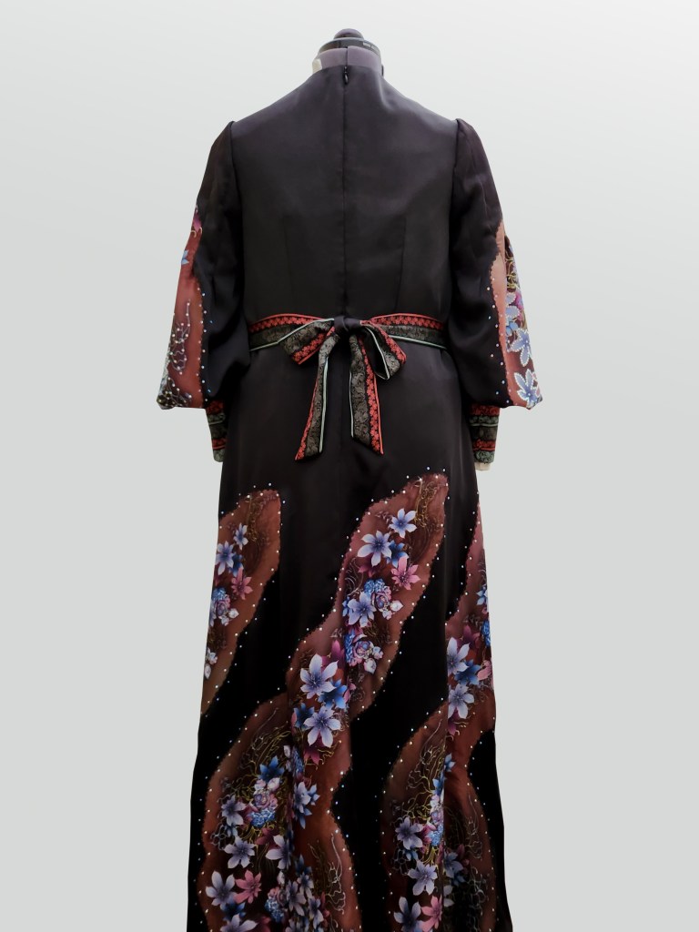 Taking each batik print piece provided by the client and skillfully separating them to recreate a new masterpiece. Combining the intricate patterns of batik with the luxurious elegance of silk satin creates a gown that exudes beauty and sophistication.